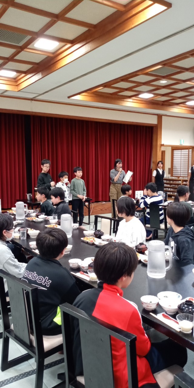 食事係のみんなのてきぱきした働きぶりのおかげで、時間通りにみんなでいただきますができました。