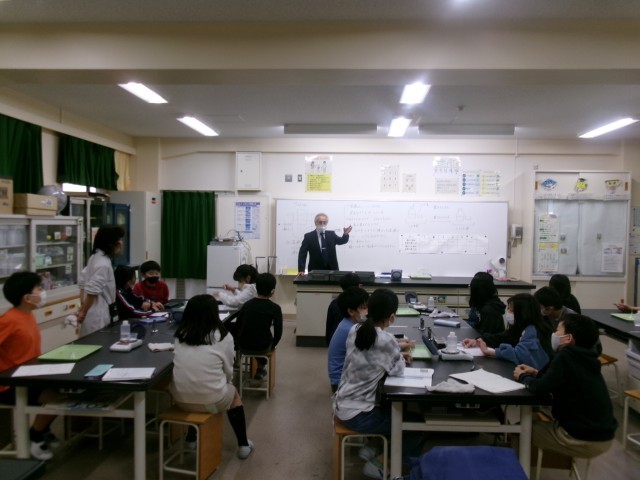 5年1組の理科「もののとけ方」の学習です。「水にものをとかした後の水溶液の重さはどうなるのだろうか。」という学習問題を解決するために、実験を行いました。理科班で協力して実験を行っていました。