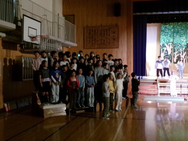 3年生は、「少年少女冒険隊」の練習をしています。冒険しているわくわくする気持ちをセリフや振り付けで表現していました。また、児童の歌声が、とても明るく元気で弾み、素晴らしいです。最後は、また素晴らしい演出があります。本番当日をどうぞ楽しみにしていてください。