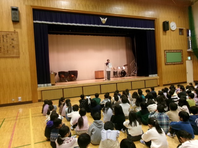 今日の全校朝会は、体育館で行いました。校長先生からは、「温かい言葉を発すると温かい言葉が返ってくること、言葉を大切にすること」のお話をしていただきました。また、校内書き初め展が始まります。みんなが心を込めて書いた作品を大切に鑑賞してほしいです。週番の先生からは、「ろう下の右側を静かに歩こう」という週目標について話がありました。今週も寒さに負けず、安全に元気に過ごしてほしいと思います。
