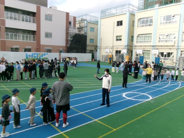 今朝の体育朝会は、長縄でした。クラスが一丸となって長縄を跳びました。どのクラスもかけ声をかけ、団結していました。