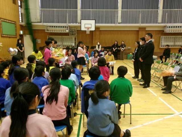 ファイナルコンサートの後は、6年生の卒団式が行われました。4・5年生からは、同じパートの6年生に感謝の気持ちを伝え、6年生から4・5年生へは来年も頑張ってほしいというエールを送りました。また、6年生からは、指導していただいた先生方へ感謝の気持ちを伝えました。本校の特色ある教育活動「高南ジュニアバンド」は、しっかりと引き継がれ、今後も特色ある教育活動として取り組んでいきたいと思います。