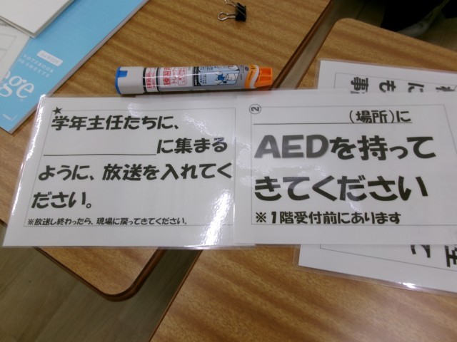 児童が下校してからは、教職員で「アレルギー対応研修」をしました。エピペンの使い方や教職員の連絡や動きについて全員で確認をしました。