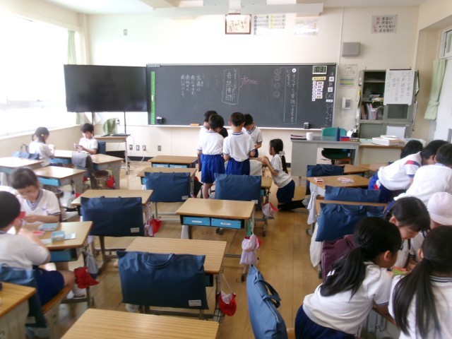 休み時間の様子です。本校では、校庭・体育館・教室と学年で場所を分けて休み時間を過ごしています。ローテーションで場所を分けているので、中休みは室内、昼休みは校庭というようにみんなが安全に楽しく休み時間を過ごすことができるように工夫をしています。