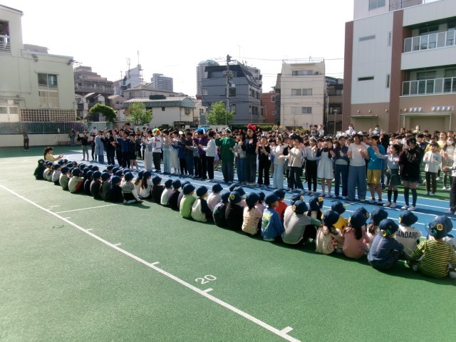 今日の集会は、「1年生よろしくね集会」でした。まずは6年生から1年生にあいさつをし、その後、1年生から全校児童にあいさつをしました。そして、2年生以上のみんなが「アミーゴでサンバ」を1年生に披露しました。とても和やかな集会になりました。