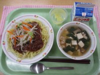 牛乳ジャージャー麺豆腐ときのこのスープサイダーゼリー