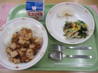 牛乳麻婆豆腐丼じゃこと海藻サラダ梨