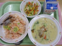 牛乳キーマカレーライス野菜のレモン風味プルプルフルーツポンチ