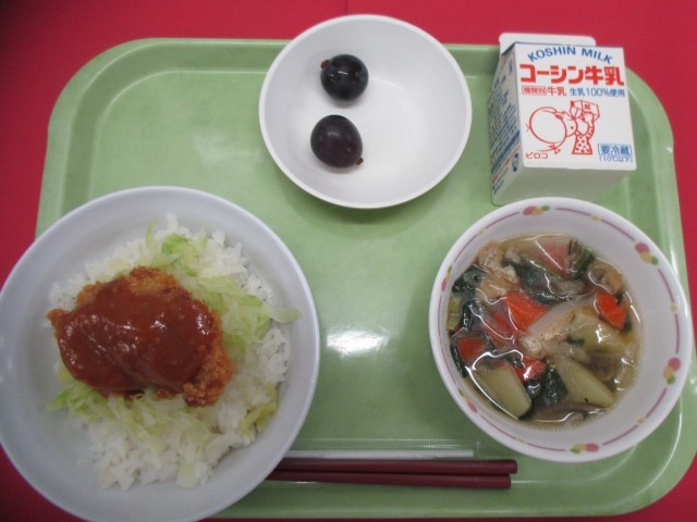 給食室で作った手作りのみそダレが大人気で「白いごはんに、みそだけつけて食べたい!」と言っている児童もいました。
