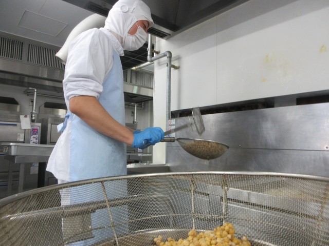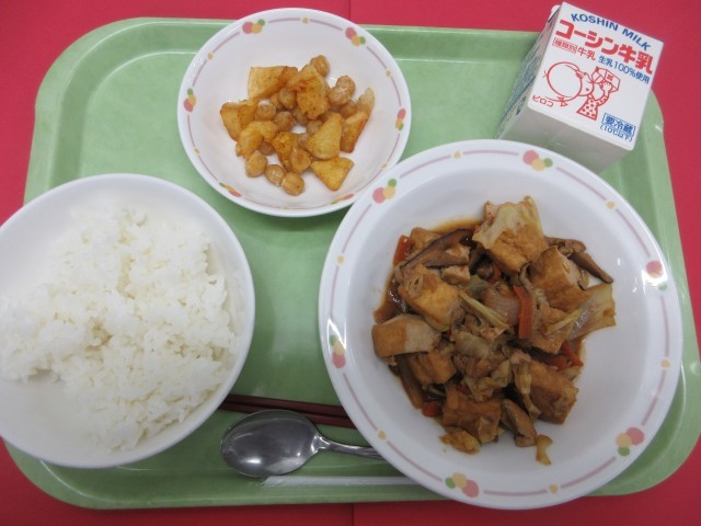 今日の家常豆腐は、生揚げを使って作っています。生揚げは豆腐を油で揚げたもので、炒めたり、煮込んだりしても、普通の豆腐より崩れにくいのが特徴です。