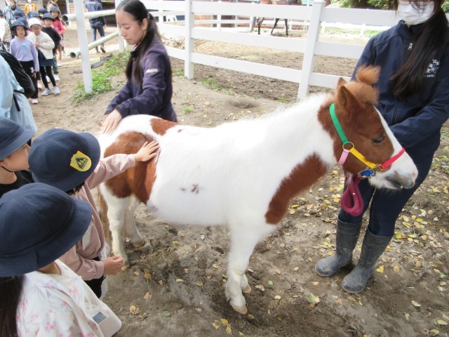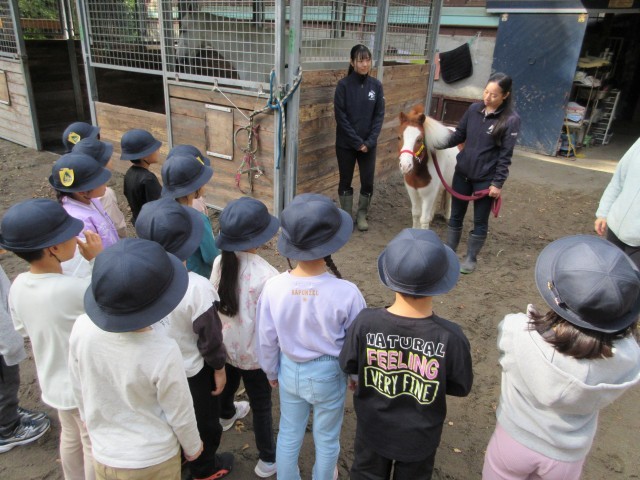 2年生に続き、1年生も学習院大学でポニーとふれあい体験をさせていただきました。