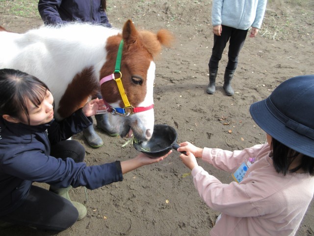ポニーを触ったり、餌をあげたりと貴重な体験ができて、子供たちは嬉しそうでした。
