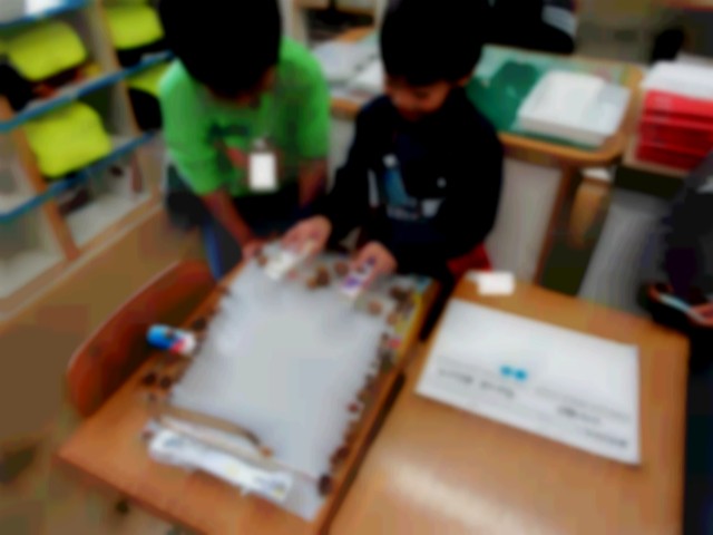 生活科の授業で、どんぐりや松ぼっくりを使った「秋のおもちゃづくり」をしました。