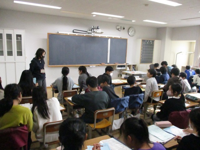 12月のなかよし班ロング班会の内容決めを6年生が5年生の仮班長に教えながら行いました。