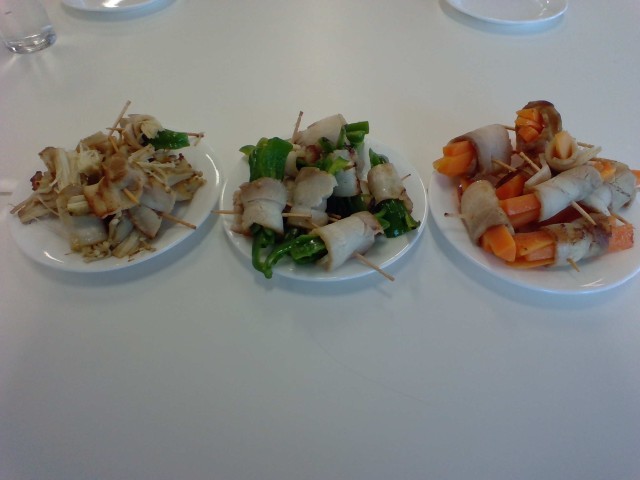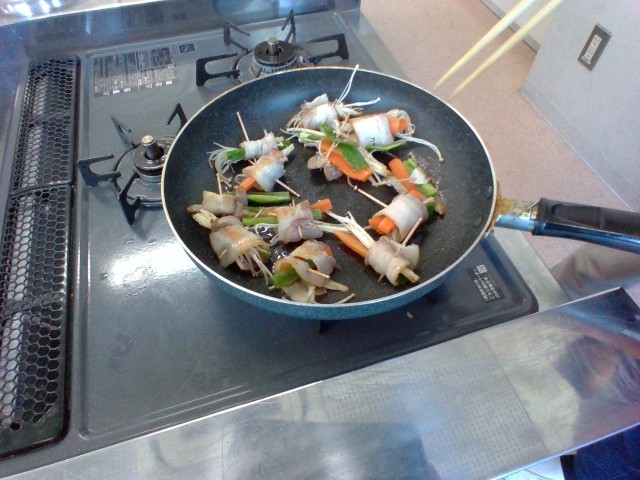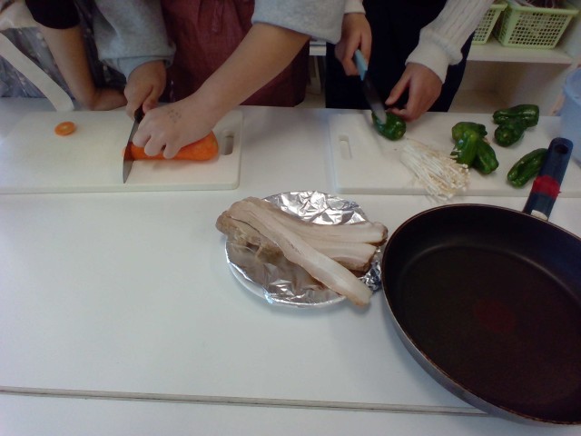 2学期の家庭科の学習の最後は、調理実習です。2組、3組でも行った調理実習。今日は1組で行いました。メニューは野菜ときのこのベーコン巻きです。人参、ピーマン、エノキダケをベーコンで巻いて塩コショウで炒めます。グループで仕事を分担、協力しながら上手に仕上げていました。「美味しい!」「家でも作りたい!」そんな声がたくさん聞こえてきました。
