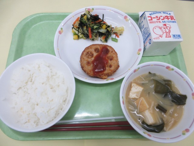 ボリュームたっぷりの「れんこんのはさみ揚げ」でしたが、児童はとてもよく食べていました。