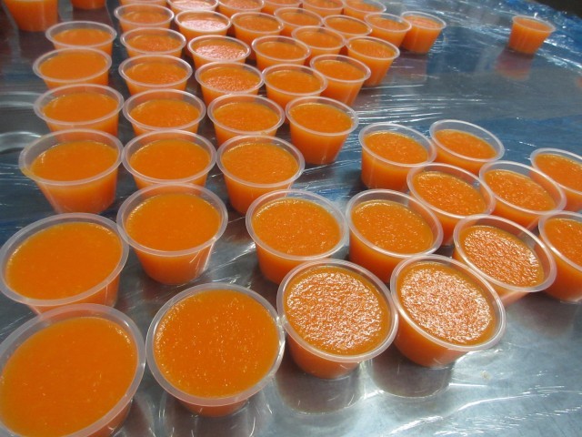 今日のデザートは、リザーブ給食でした。キャロットゼリーとサイダーゼリーどちらにするか、とても迷った人もいたようです。学校全体では、キャロットゼリーを選んだ人が149人、サイダーゼリーが480人でした。キャロットゼリーは寒天を使っているので、さっくりとした食感に、サイダーゼリーはアガーを使っているのでフルフルとした食感に仕上がりました。