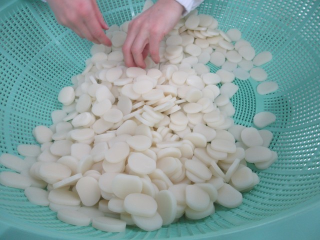 今日の「トックスープ」のトックは、韓国の“もち”の一種です。 韓国の“もち”は、粘り気のある、もち米ではなく、ふだん、私たちが、ごはんとして食べている、うるち米を原料にして作られています。もち米の“もち”と違い、粘りや伸びは少なくて、歯切れがよく、煮込み料理や鍋料理に加えても、煮崩れしにくいことが特徴です。