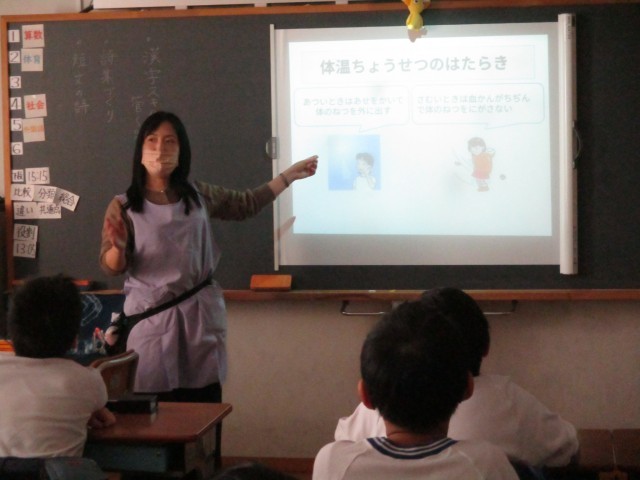 季節に合わせた体温調節等について、養護教諭から指導がありました。