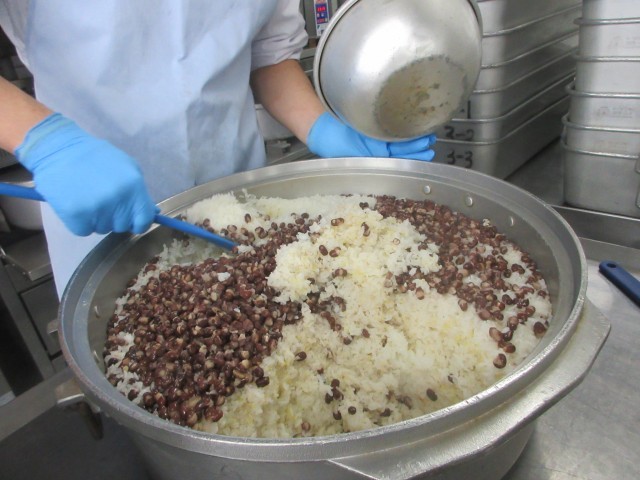 それにちなみ、今日は米に小豆やあわ、きびを一緒に炊き込んだ五穀ごはんにしました。