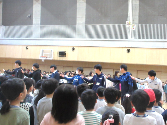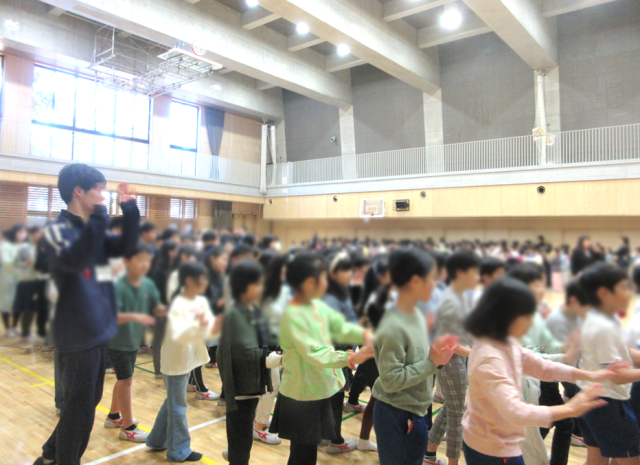 先生たちが前に出て振り付けを見せると、子供たちは大喜び。大いに盛り上がりました。