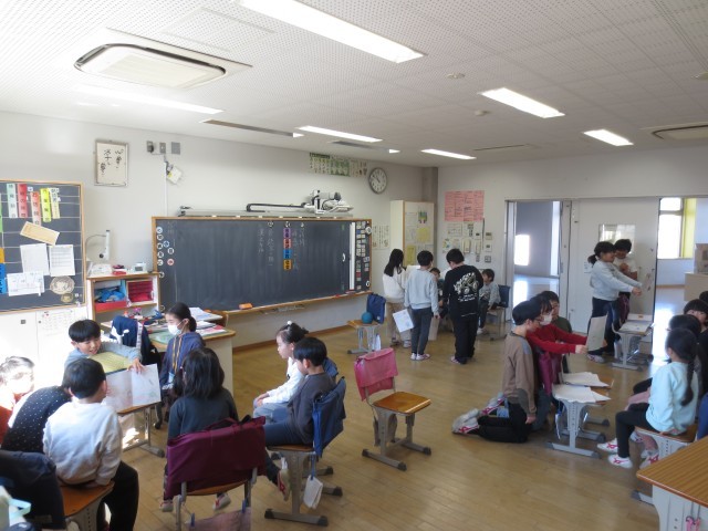 4月から最高学年としてなかよし班などを引っ張っていく立場となる5年生。今日、明日とペアとなる組同士で交流会を行います。