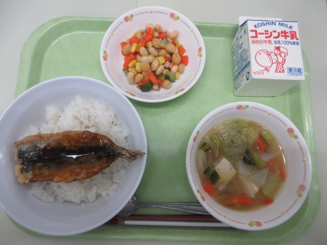 節分は、季節の分かれ目の日のことをいい、昔から特に冬から春に変わるこの日を大切にしてきました。ふりかかる災いから身を守り、1年の幸せを願う行事です。節分には豆をまくことで、魔除けになると言われています。炒り大豆をまき、鬼の嫌うひいらぎの葉やいわしを使ったおかざりを玄関先に飾る習慣がありますね。給食では、いわしを使ったかばやきどんと大豆を使ったサラダを作りました。