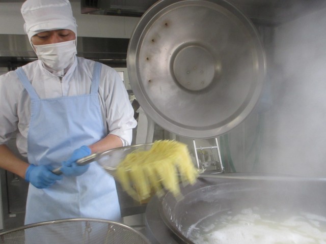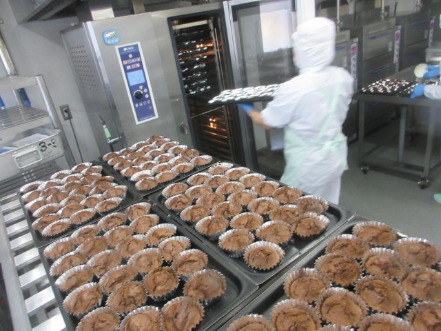 今日も給食室は10度を下回る室温で、ケーキの生地が寒さ固くなってしまい、カップに入れるのに苦戦しましたが、オーブンで焼き上げるとチョコチップケーキの良い香りが給食室中に広がりました。