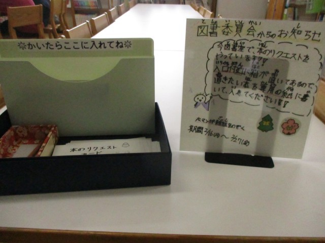 児童図書委員会が考え、購入図書のリクエストボックスを設置。