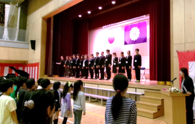まずは就任式を行い、新しく着任した教職員の紹介や、担任、専科の発表をしました。