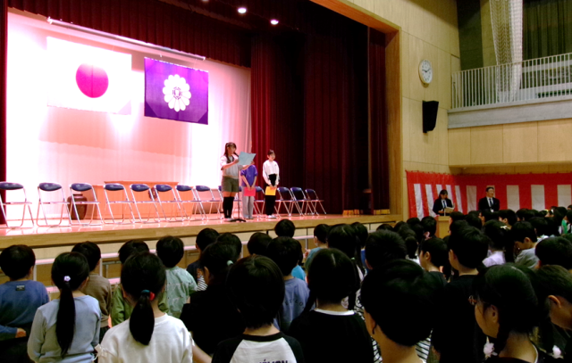 6年生の代表児童が、「挨拶であふれる学校にしたい」「最高学年として頑張りたい」と立派に話しました。とても頼もしいです。