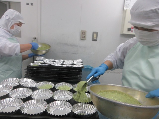 今日の給食では、よもぎ蒸しパンをつくりました。よもぎはキク科の多年草であり、独特な香りがするのが特徴です。 よもぎ蒸しパンには、甘納豆を入れているので甘納豆の甘さとよもぎの香りがマッチしている一品です。