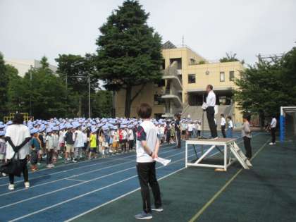 今週もお話朝会がありました。6年生が移動教室から戻り、感想を話しました。校長先生や看護当番の先生からは、暑い日の過ごし方や豪雨の際の対応、校内の生き物についての注意点などお話がありました。