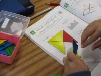 3時間目には、ずっと遊びたくて楽しみにしていた校庭に出ました。歌に合わせて準備運動をしたり、体じゃんけんやリズムに合わせて動いたりしました。これから校庭でたくさん学習したり、遊んだりするのが楽しみです。