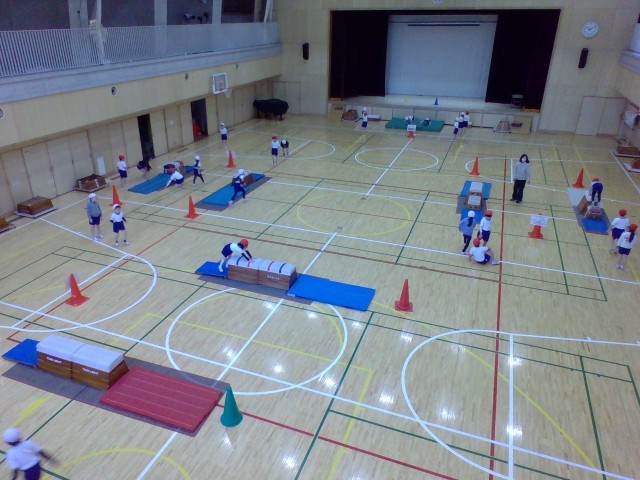 学習のまとめとして、体育館に4つの遊び場をつくり、自分が取り組みたい場で力いっぱい楽しみました。