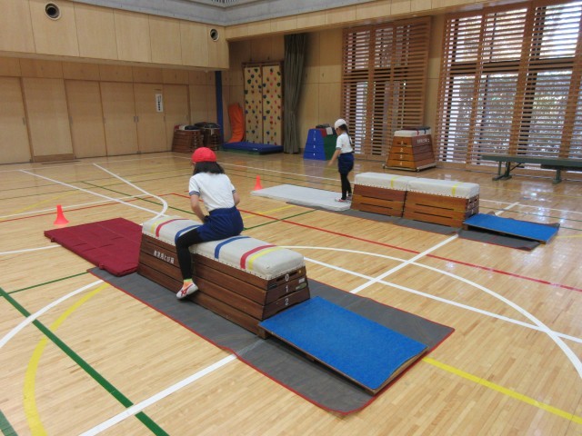 跳び箱を使った運動遊びでは、踏み越し跳びやまたぎ乗りなど様々な動きを経験してきました。