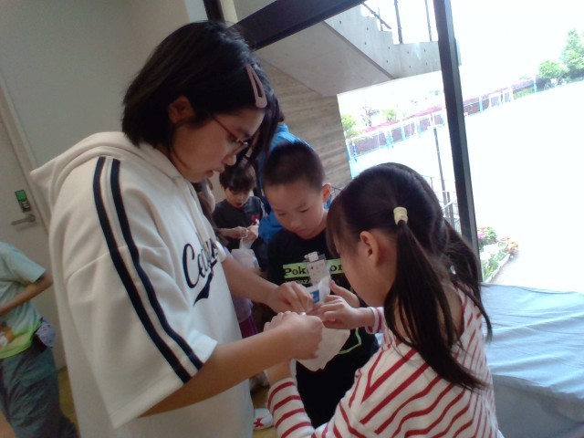 給食で飲んだ牛乳パックの開き方も教えてもらっています。