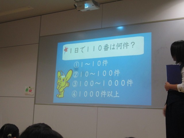 社会科授業の一環として、目白警察署警備課の方々に来ていただき、警察の仕事について教えていただきました。