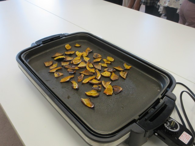 家庭科室で焼いたかぼちゃに塩をかけて味わいました。