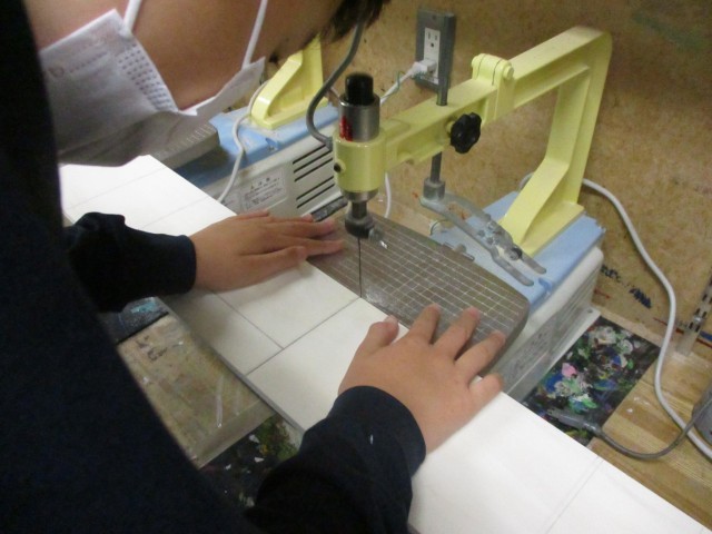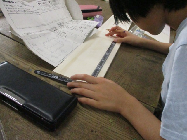 自分の設計図をもとに、板を糸鋸で切り分け始めました。