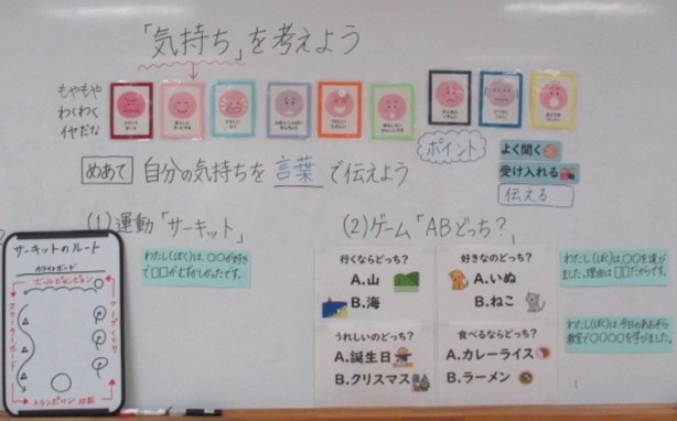気持ちにはいろいろな種類があること、自分の気持ちを言葉で伝えること、自分と違う相手の気持ちも受け入れることを学習しました。