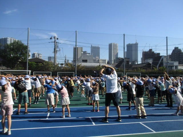 全校で、目白体育祭の準備体操を行いました。みんな元気よく、体操をしました。