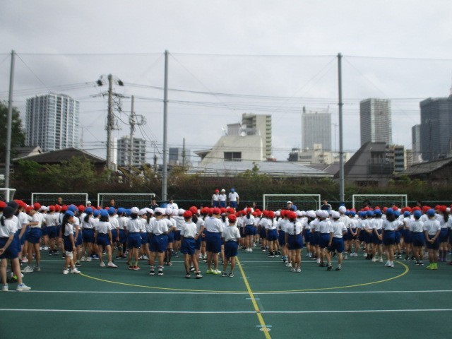 今日は曇り空で気温も低かったですが、全校児童そろっての練習に元気に取り組む様子が見られました。