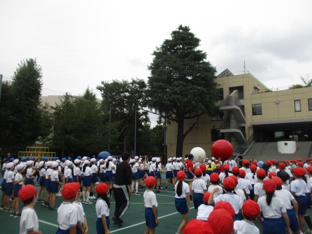 今日の練習は、①開会式②準備運動③全校競技「大玉送り」でした。
