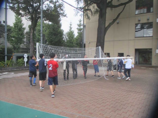今朝の全体練習は雨天のため中止になりましたが、午後には雨が上がり予定通りサッカーゴールの片付けやテントの設置などが行えました。