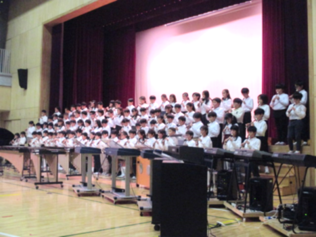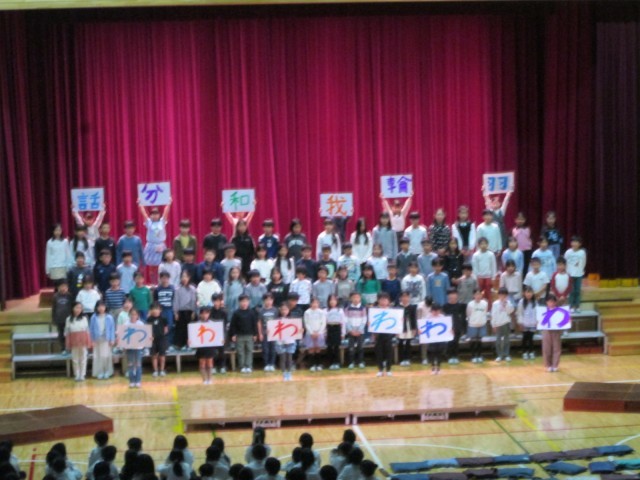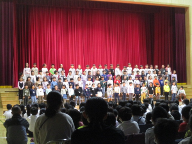 1・3・5年生は群読の発表、2・4・6年生は音楽の発表を行いました。