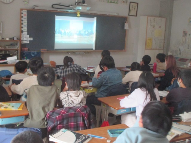 秋田県の向能代小との交流に向けて、向能代小4年生が作成した動画を見ました。