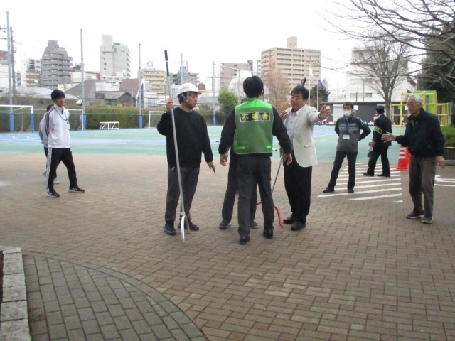 町会長をはじめ、地域の方々が協力して訓練を行いました。
