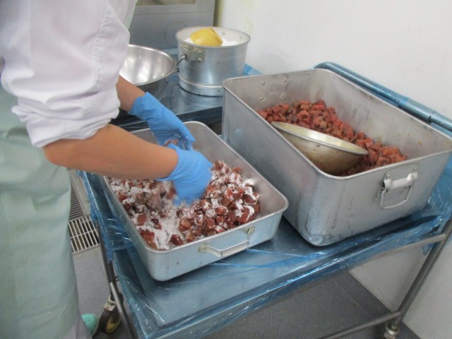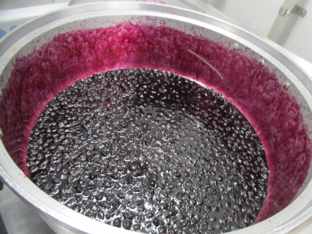 今日は東京都産のブルーベリーを使って、給食室でジャムを作りました。