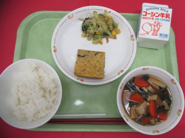 今日の給食は、肌寒い日にもぴったりの、しおバターラーメンを作りました。豚と鳥でとっただしで野菜をじっくり煮込んだスープにたまねぎ・もやし、コーン、にんじんなどの野菜がたっぷりと入れています。野菜は赤・黄・緑の3色のうち、緑色に分類される食べ物です。ビタミンや食物繊維が多く含まれていて、風邪をひきにくくしたり、体の調子を整えたりするはたらきがあります。最近、体調不良でお休みしている人もいるので、しっかり食事をとって体の調子を整えることを意識して過ごしてほしいと思います。 -